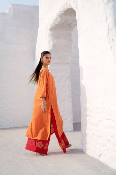 Round Neckline With V Slit, Hand Embellishment On Neckline & Sleeves, Embroidered Long Shirt