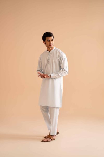 Immerse yourself in a new style with this two piece suit from the latest men's unstitched summer collection.
