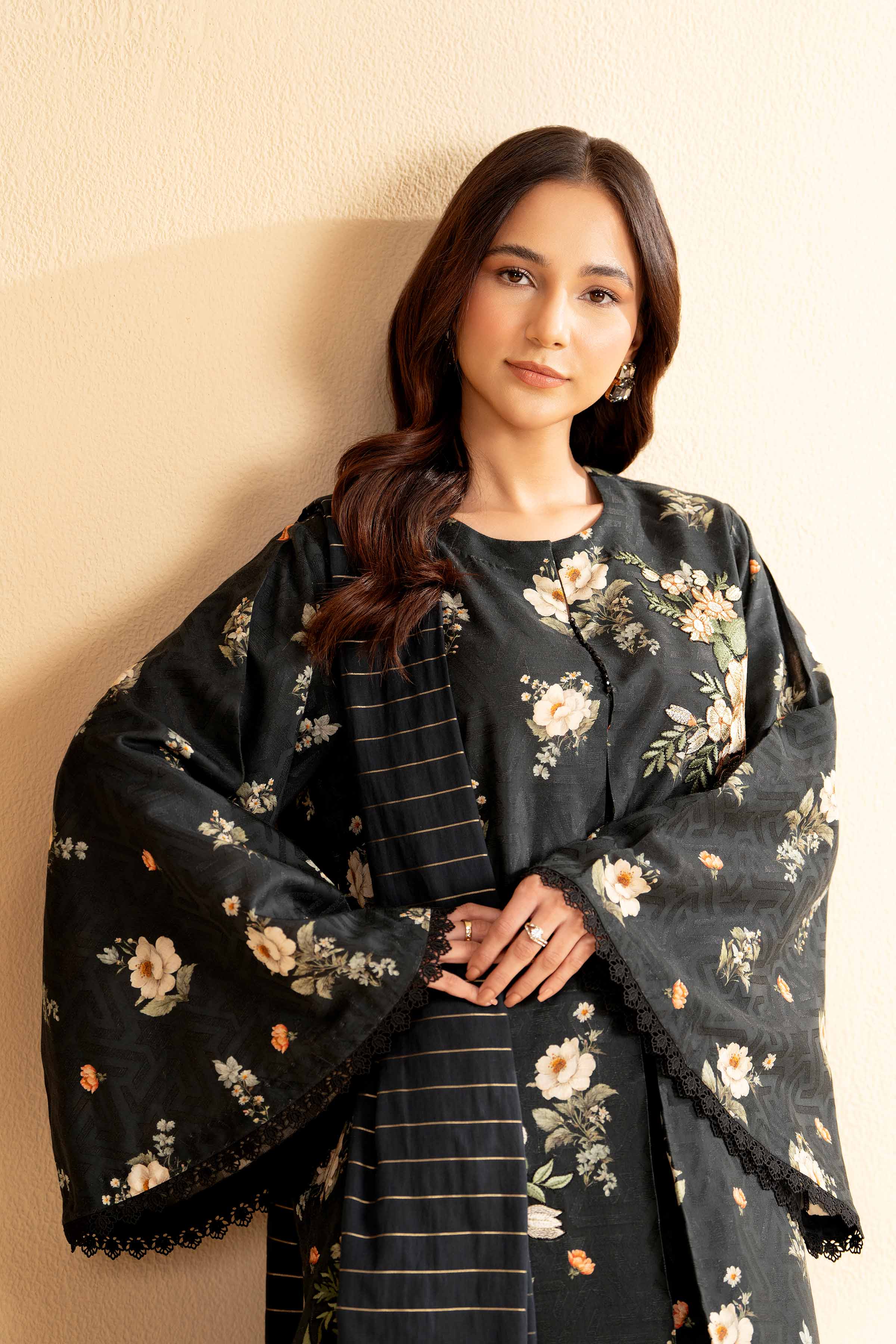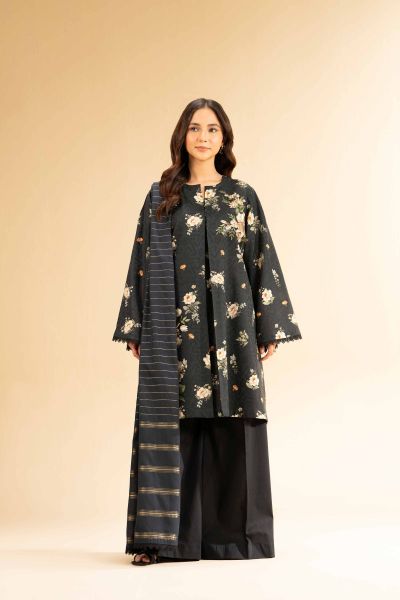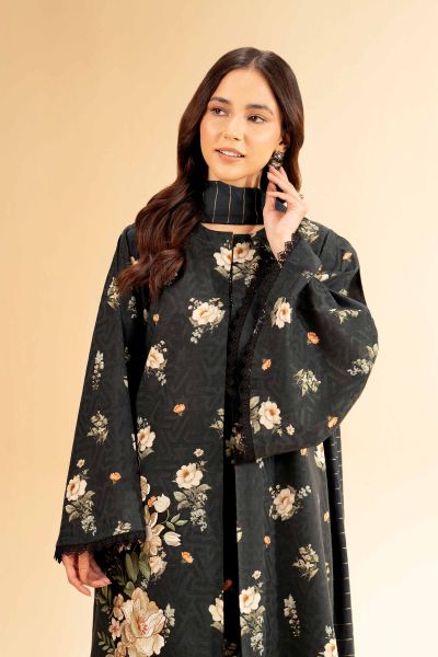 Enhance your personal style with this digital printed jacquard embroidered three-piece from the latest unstitched summer collection.