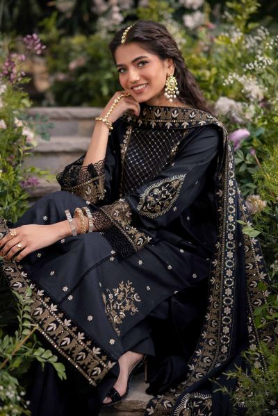 Reveal your bold side with this dyed embroidered three-piece from the latest unstitched summer collection.