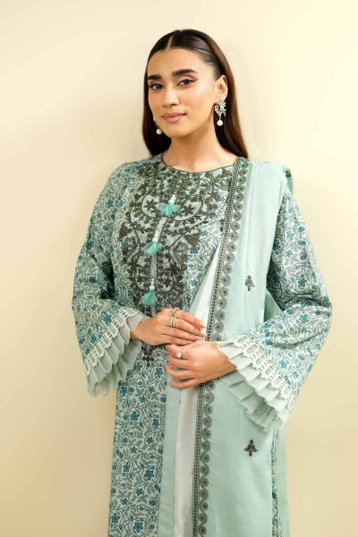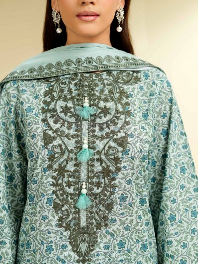 Define your signature style with this elegant printed embroidered three-piece from the latest unstitched summer collection.